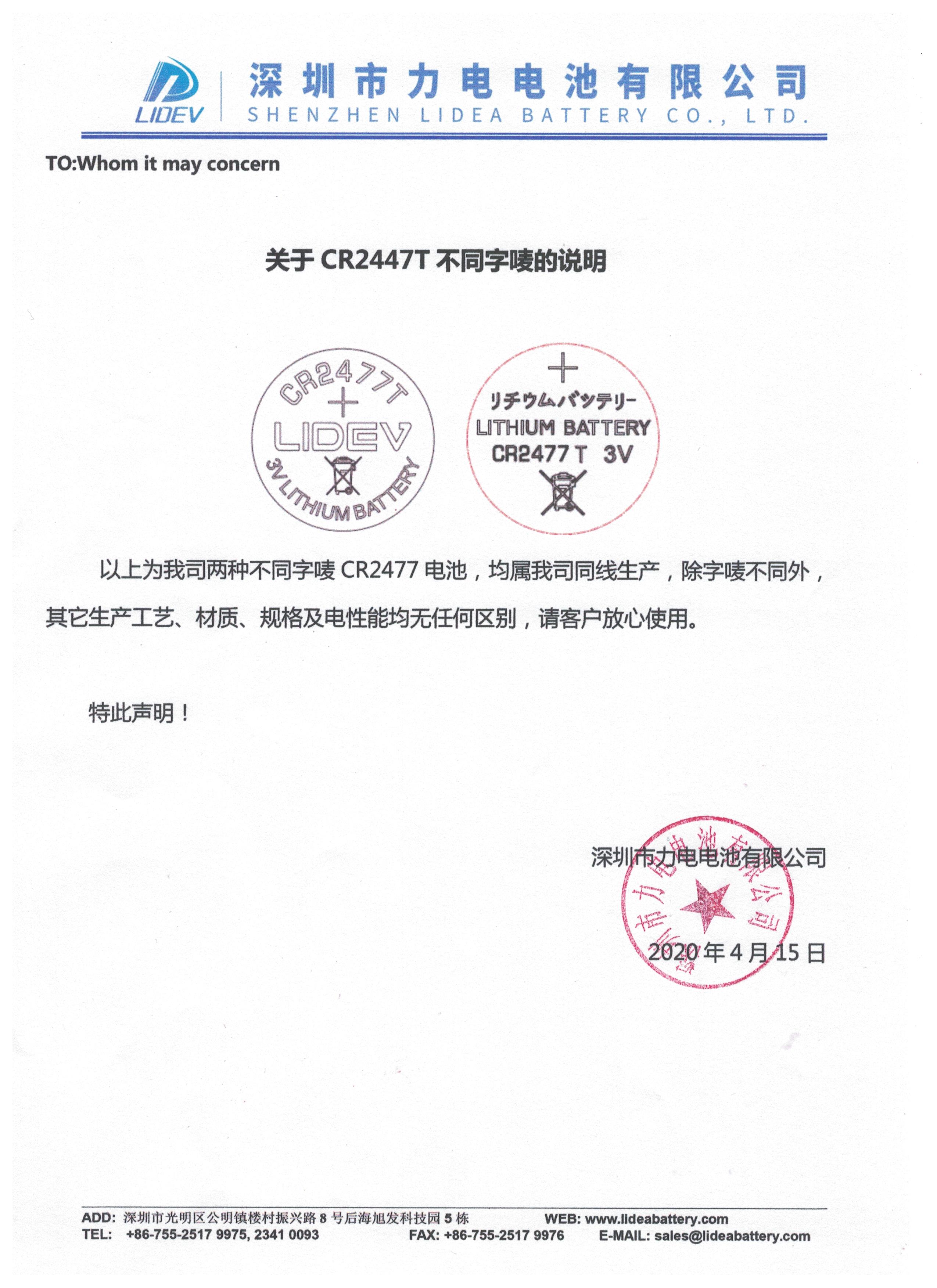 CR2477T LIDEV和中性品牌均屬我司同線生產(chǎn)